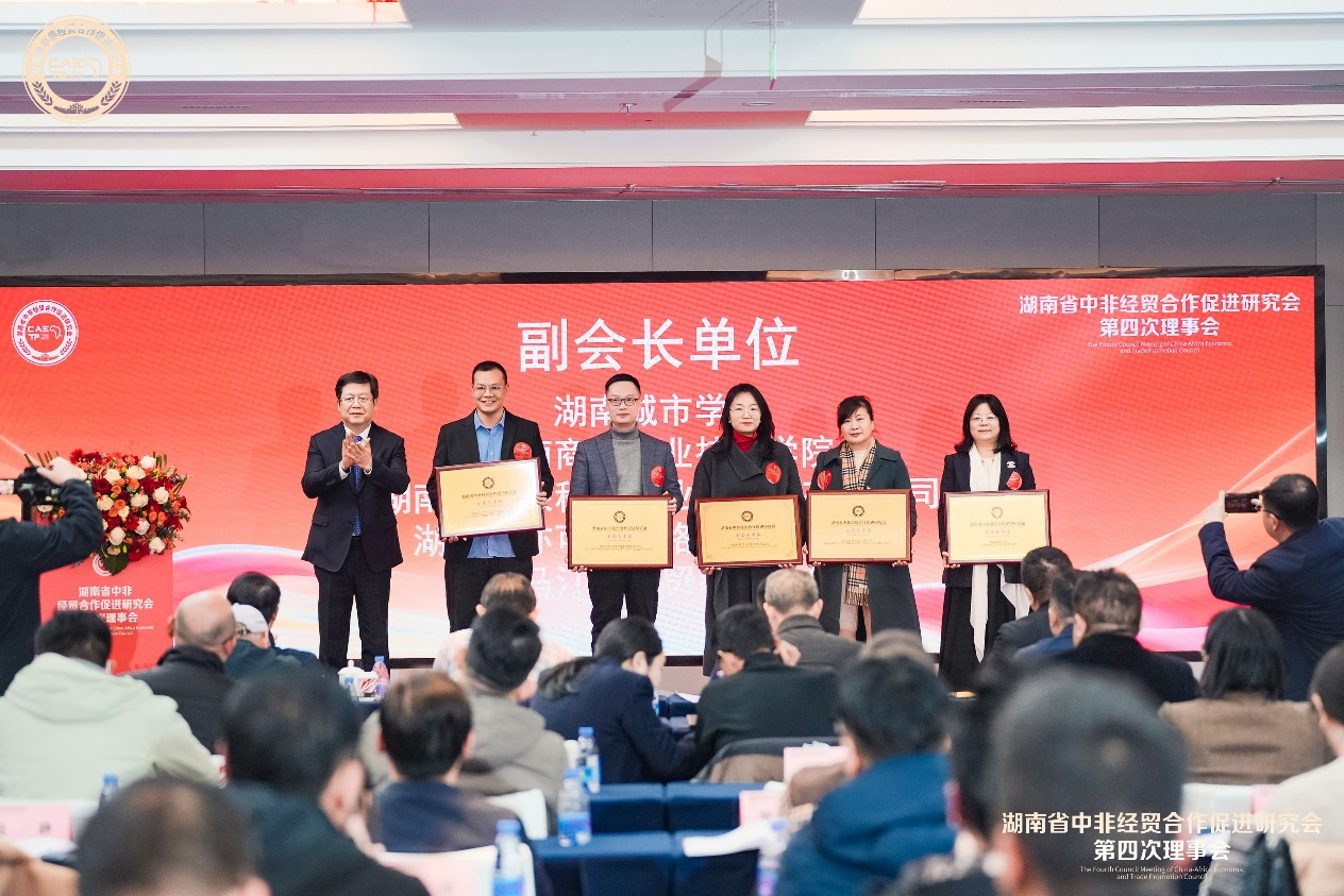本网讯(通讯员 杜林远)2月11日,中国-非洲共建可持续未来投资经贸合作交流会暨湖南省中非经贸合作促进研究会第四次理事会在湖南长沙举行。省政协副主席肖百灵、坦桑尼亚驻华大使哈米斯·穆萨·奥马尔等中外方政府官员,以及20余家境内外商协会代表及400余名中非企业代表参会,副校长徐姝率队参加会议。