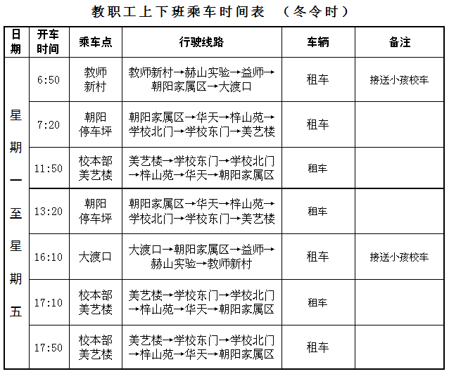 经学校研究决定,教职工2月23日开始上班(上下班交通车开通),学生2月24日报到注册,2月25日(周一)正式上课,作息时间及上下班交通车安排表附后。请各单位做好开学准备。
