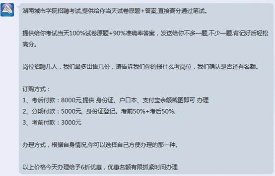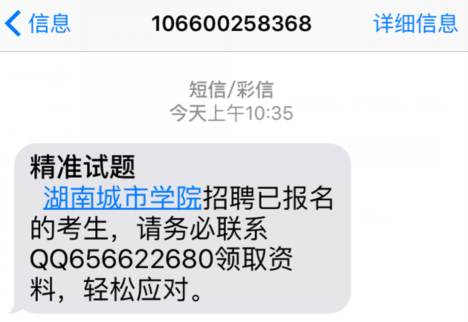 今日,根据部分在城市学院招聘系统报名的应聘者反映,有不法分子给应聘者发彩信,要求应聘者联系QQ号656622680领取资料,称可以轻松应对。