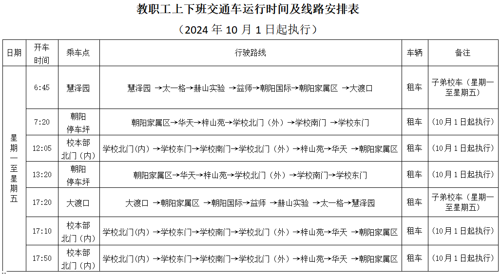 2.教职工上下班乘车时间表(冬令时)