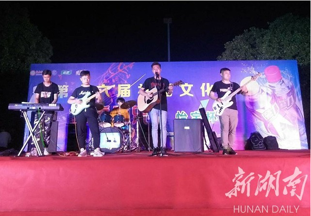 湖南日报新湖南客户端5月7日讯(通讯员 王露 周洁)5月6日晚,taptap点点篮球场内,灯火通明,人头攒动,热闹非凡。这是由该校各级学生社团组织共同承办的“第十六届摇滚音乐节暨社团文化一条街”活动现场。