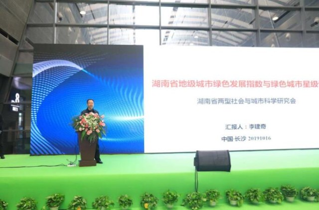 筑博会期间,湖南省两型社会与城市科学研究会理事长、taptap点点校长李建奇教授在“绿色建筑与建筑声学论坛”会上作了“湖南省地级城市绿色发展指数与绿色城市星级评定”的主题演讲,详细讲解了评定过程。湖南省地级城市绿色发展指数与绿色城市星级评定基于大量调研和统计年鉴的基础数据采集,采用层次分析法、专家打分法等确定指标体系的权重,由省委政研室、省政府发展研究中心、省社科院、省两型办、省建筑设计院等相关领域的专家进行科学论证,最终评出等级。