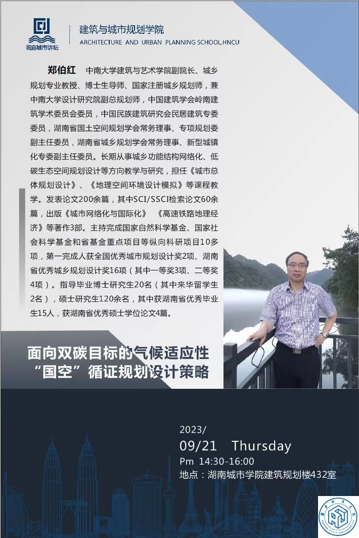 上一条:中南大学郑伯红教授“面向‘国空’的气候适应性循证规划设计策略”学术报告