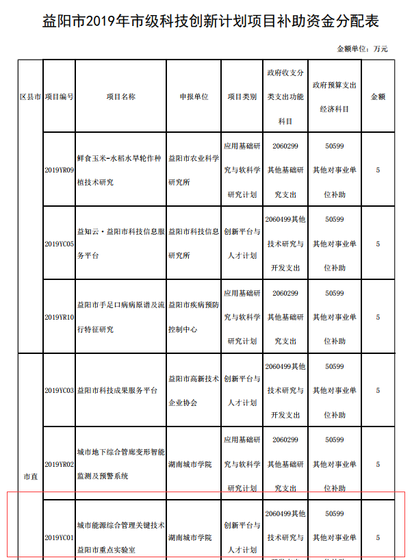 2019年11月19日,益阳市财政局和益阳市科学技术局发布了《关于下达2019年科技创新计划项目补助资金的通知》,学院城市能源综合管理关键技术益阳市重点实验室成功入选。