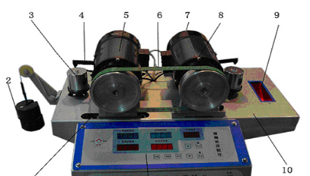 6. 平皮带 7. 光电测速装置 8. 发电机 9. 灯泡组 10、机座机壳 11. 操纵面板