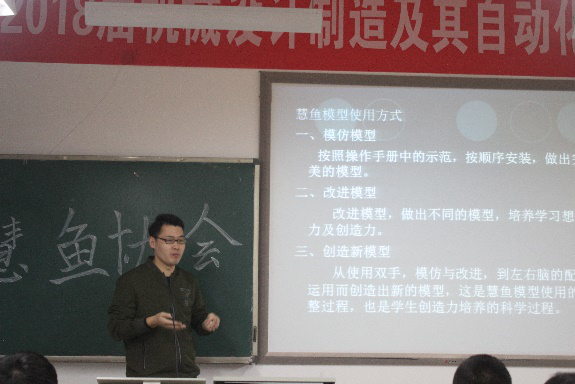 为突出我院特色,建设好学院品牌社团,慧鱼协会于2019年5月26日在土木楼506、702开展了第三届慧鱼模型拼装大赛。慧鱼协会指导老师郭高峰,首先为同学们介绍了慧鱼协会的具体情况,并详细解释了什么是慧鱼,慧鱼可以做什么。在郭老师的介绍下,同学们学会了拼装慧鱼模型的基本技巧。随后同学们在土木楼702慧鱼实验室,进行热火朝天的拼装大赛。一个个黑色红色的小模具,在同学们的手上变成了可以自行活动的小型机器人。慧鱼模具拼装而成的机器人展现的正是机械的魅力。用慧鱼制作的简单机器人可以通过齿轮转动来实现物品的远距离输送,还可以用太阳能作为动力,在运动过程中实现对障碍物的识别从而实现转向绕开。通过本课程的学习,培养学生的科研兴趣,推动学生在本科阶段得到科学研究与发明创造的训练,调动学生的主动性、积极性,激发学生的创新思维和创新意识,营造创新教育文化氛围,全面提升学生的科技创新能力。在同学们的掌声和欢呼声中,本次慧鱼模具拼装大赛取得了圆满成功。