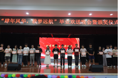 随后,颁奖仪式隆重举行。学院党委副书记易志明宣读获奖名单,吕贤军、余洪、胡威朋分别为王朝辉等12名优秀党员、周禹等25名优秀干部、杨鄂等32名优秀毕业生颁奖,表彰他们大学期间的优异表现。希望获奖同学以荣誉为新起点,也期待全体毕业生在未来征程中继续发扬母校赋予的拼搏精神,让青春在更广阔的天地间绽放光彩。