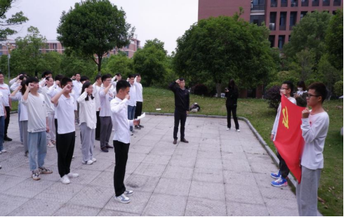 合唱结束后,马小林同志带领党员面向党旗,庄严地宣读中国共产党入党誓词,重温党的初心,坚定自己的决心信念。对于本次活动,预备党员代表黄郡发表感言,分享了自己对红歌的感受,深刻地认识到红歌所承载的历史、所记录的艰辛,红歌响亮,历史勿忘,缅怀先烈,方能不负所望。随后,入党积极分子代表刘怡婷也有感而发,阐述红歌本身的教育意义以及对于树立自身理想追求的帮助。
