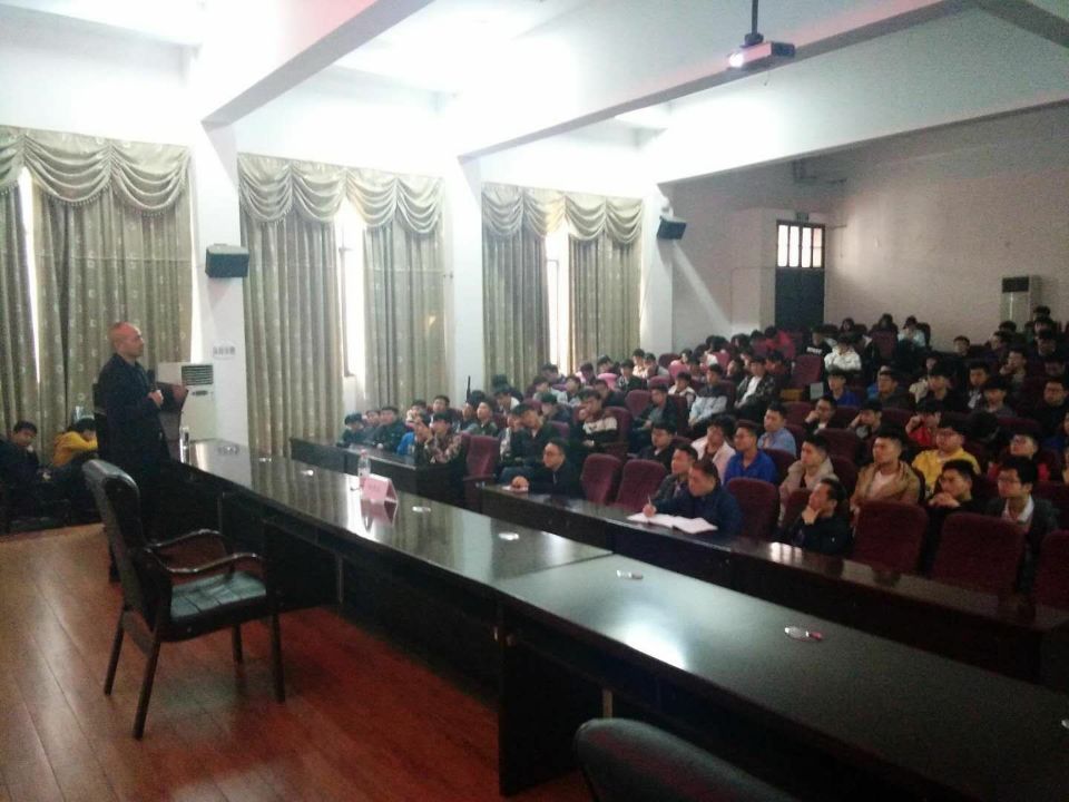 孙亮波教授首先以创新创业提出的背景、“工程教育认证CDIO”等人才培养理念为切入点,分析了工程应用型创新人才培养的紧迫性和重要性,并以自己设计的救人担架、“大黄蜂”机械人、“斗牛”自行车等机械设计作品为例,介绍了全国机械创新设计大赛、“挑战杯”课外科技制作大赛等7个与机械专业相关的竞赛以及机械科技制作流程,使在场师生对机械类竞赛有了更为全面的认知。孙亮波博士还结合自己丰富的大赛指导经历,强调了学以致用的重要性,希望同学们重视科技制造,树立科学技术应用为先的意识,学会用专业知识解决专业领域的问题。他最后勉励同学们心怀梦想,在日常学习中注重自身专业能力、创新能力、动手能力、科技论文写作能力、专业表达能力、团队协作能力等综合能力的培养和提升。讲座不仅加深了同学们对学科竞赛的了解,也激发了同学们参加学科竞赛的热情。(文:范彬)