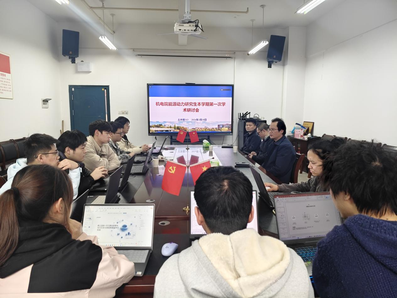 (通讯员:袁聪)2026318日下午14时,机械与电气工程学院能源动力硕士点在土木楼313会议室成功召开本学期第一次研究生学术研讨会。学院院长张光富教授、副院长黄志亮教授,以及邹玮、陈昶、袁越阳、袁聪等多位导师到场指导,能源动力全体15名研究生参加了会议。