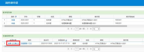 4、经开课学院教学副院长审核及教务处审核通过以后,教师申请页面中申请结果将显示:已通过。说明调课审核成功,调课流程结束。
