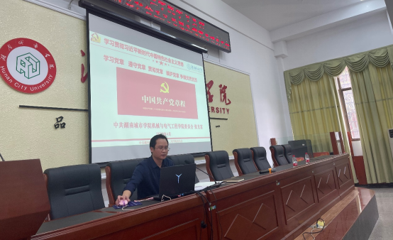 “知”党章、深思深析“悟”党章、立行立改“用”党章的内涵,解读了习近平新时代中国特色社会主义思想教育的重要论述。他结合学院实际和大家分享了近两年来我院建设和人才培养等工作成果,他表示,我院将继续落实好管党治党和学院办学的主体责任,加强干部作风建设,深化学院综合改革,彰显机电教育特色,为全院师生营造更加良好的工作学习环境。