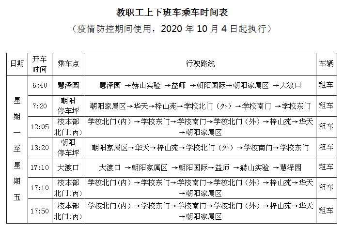 2.教职工上下班乘车时间表(冬令时)