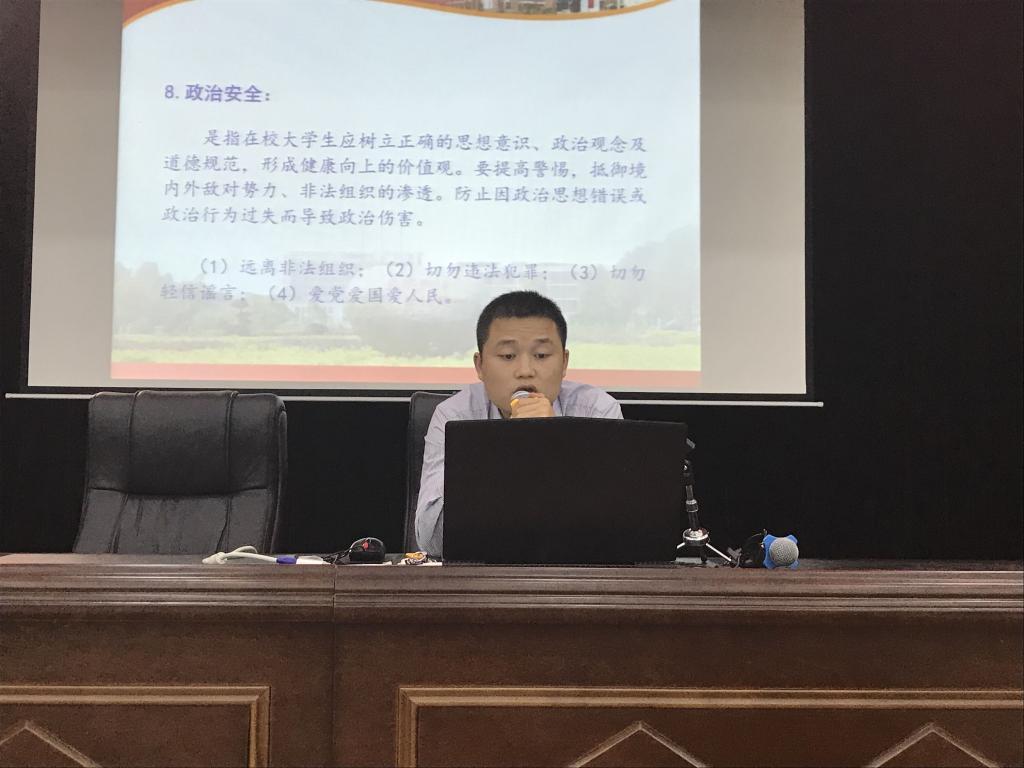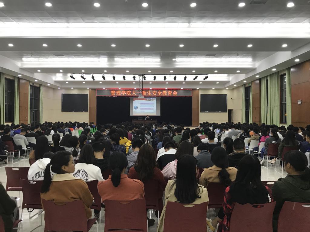 2017年11月2日晚7:00,管理学院大一新生安全教育会在新食堂三楼会议厅举行。出席本次会议的有学校保卫处张轩老师和全体管理学院大一新生。