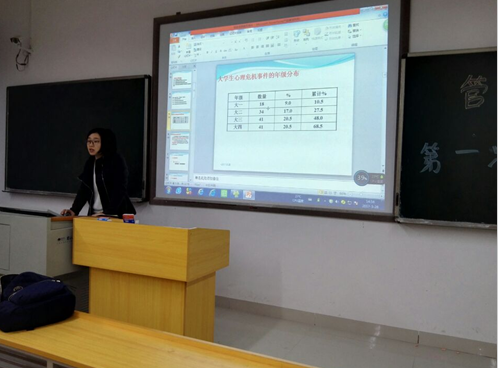 春天是心理健康问题的高发期,新学期我院为加强心理健康教育,及时对同学们的心理健康问题进行干预措施,减少因心理健康问题带来的伤害,于3月28日下午2点半,管理楼207教室召开了本学期第一次心理信息委员会议暨培训。洪安健老师担任此次会议暨培训的主讲。