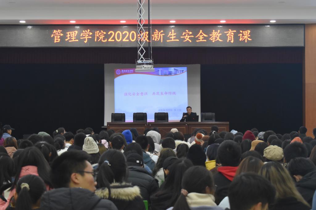 11月24日晚19时,为了提高学生安全防范的意识,增强学生遵纪守法的观念,管理学院2020级新生安全教育课于大学生活动中心三楼举行,全体2020级新生参与。