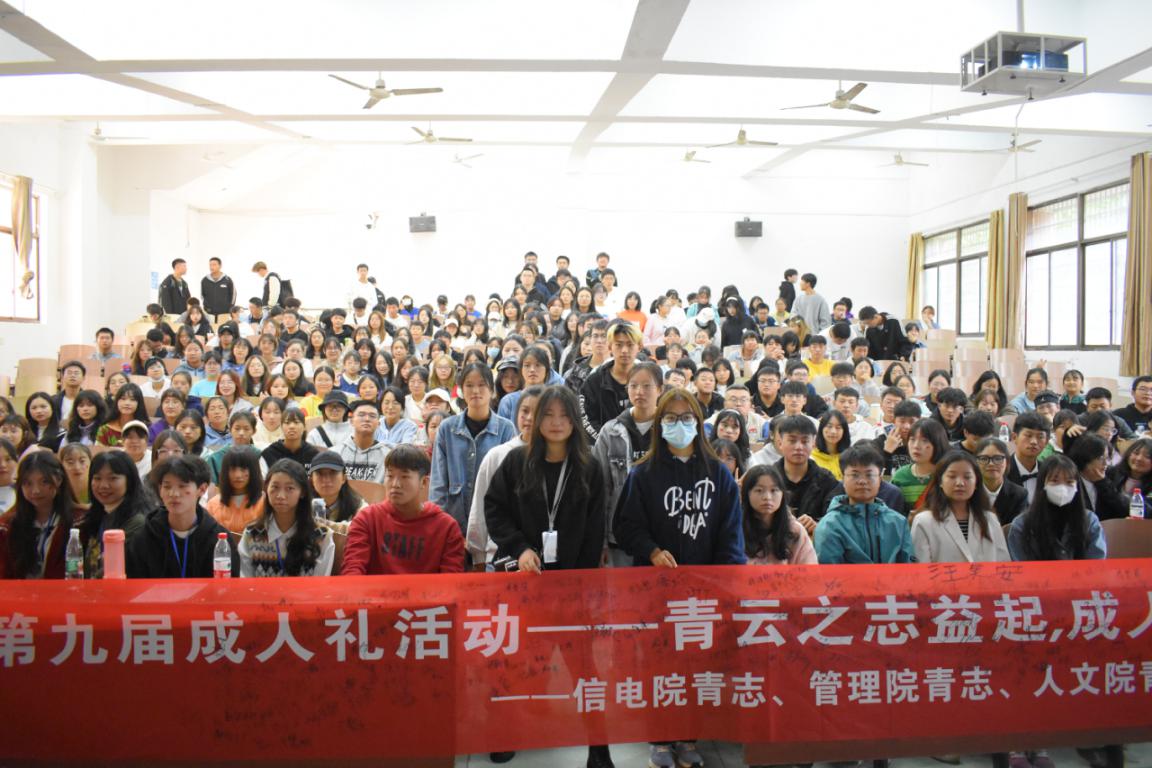 管理院、信电院、人文院于10月24日9时整联合举办了“青云之志益起,成梦之人加冠”第九届成人礼活动。管理学院团学会主席团、部长团出席活动,全体志愿者按时参加,本次活动由高雅林等人主持。