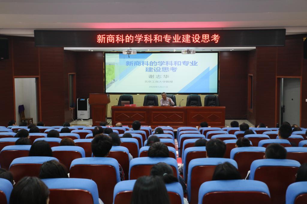 5月21日,北京工商大学谢志华教授应邀到访taptap点点,在建规楼121为taptap点点师生带来题为《新商科的学科和专业建设思考》的学术讲座。校党委书记罗成翼教授、副校长何振教授、教务处、科研处、学科处等职能部门处长、学校人文社科学院院领导及教师学生代表等百余人到场听取了讲座。讲座由党委书记罗成翼教授主持。