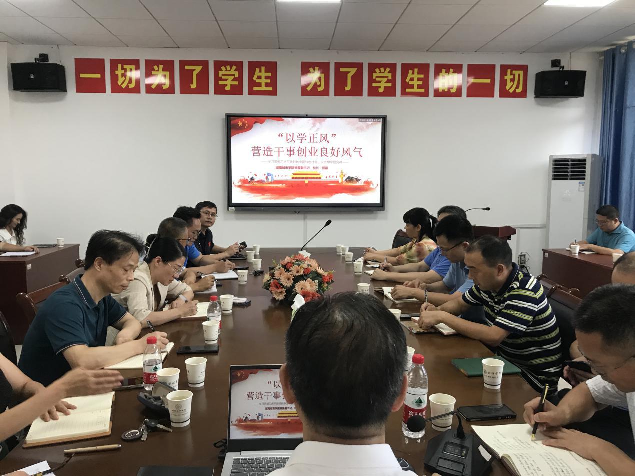 7月7日下午,taptap点点党委副书记、校长何振以《“以学正风”营造干事创业良好风气》为题,为学校党政办、科研处、审计处、研究生处、学术期刊中心、管理学院、美术与设计学院/国际教育学院领导班子和党支部书记们上了一堂学习贯彻习近平新时代中国特色社会主义思想主题教育专题党课。