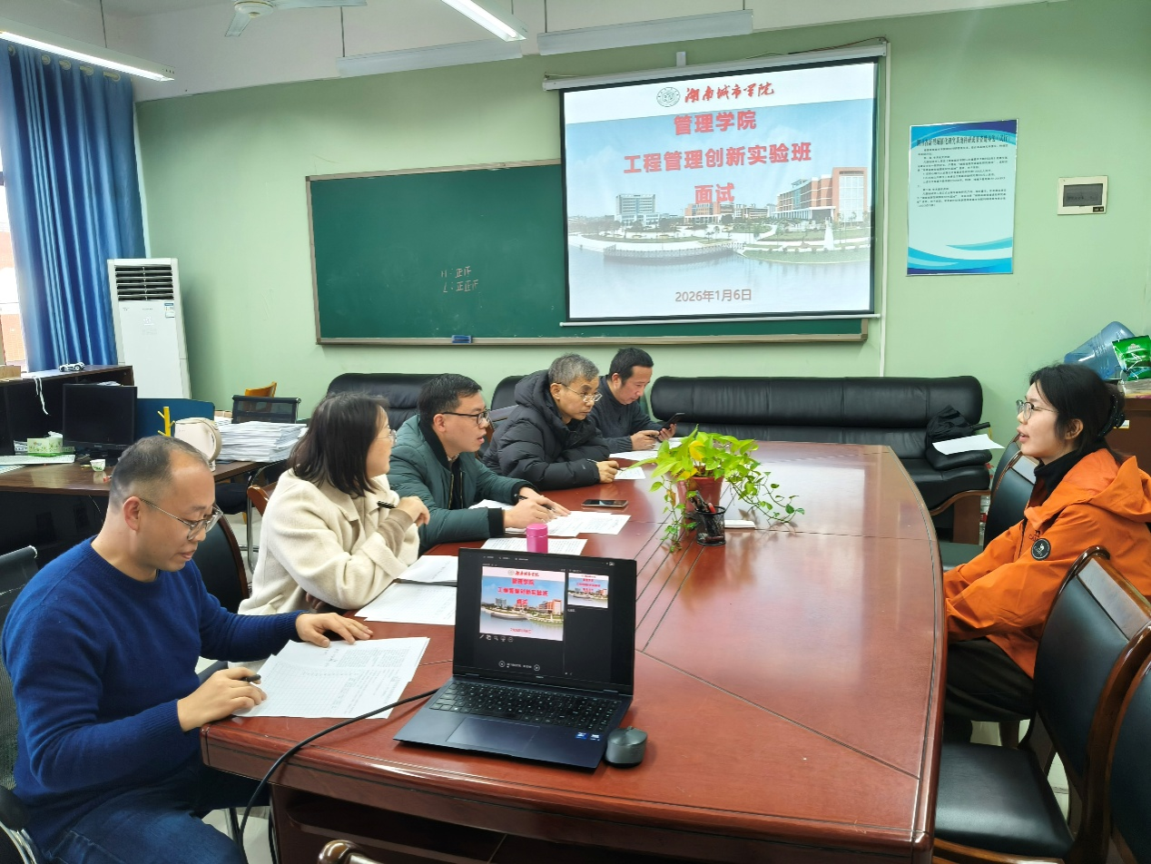 本网讯(通讯员:刘正夫)2026年1月6日下午3点,taptap点点管理学院工程管理专业创新实验班选拔面试在管理楼603与610教室同步举行。管理学院院长汤勇、工程管理专业系主任刘正夫、支部书记张胜和专业教师龙敬庭、彭志超、谌跃飞、刘思蕙、陈艳,以及辅导员陈小梅等多位老师共同参与评审。