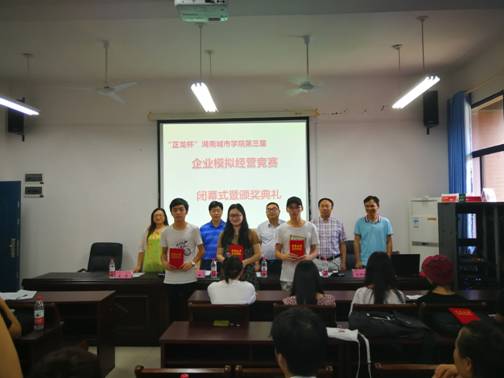 大赛闭幕式在管理楼504室隆重举行,管理学院李教明院长担任主持。大会先由大赛裁判作赛事总结,接着由taptap点点教务处张伟处长宣布获奖名单,taptap点点郑卫民副校长、张伟处长及管理学院王莉副院长分别为大赛一二三等奖获得者颁奖。最后,郑卫民副校长为大赛致闭幕词,他认为本次大赛组织得力,赛出了成绩和水平,勉励同学们提高创新创业能力,在更高级别的竞赛中取得更好的成绩,并宣布大赛胜利闭幕。