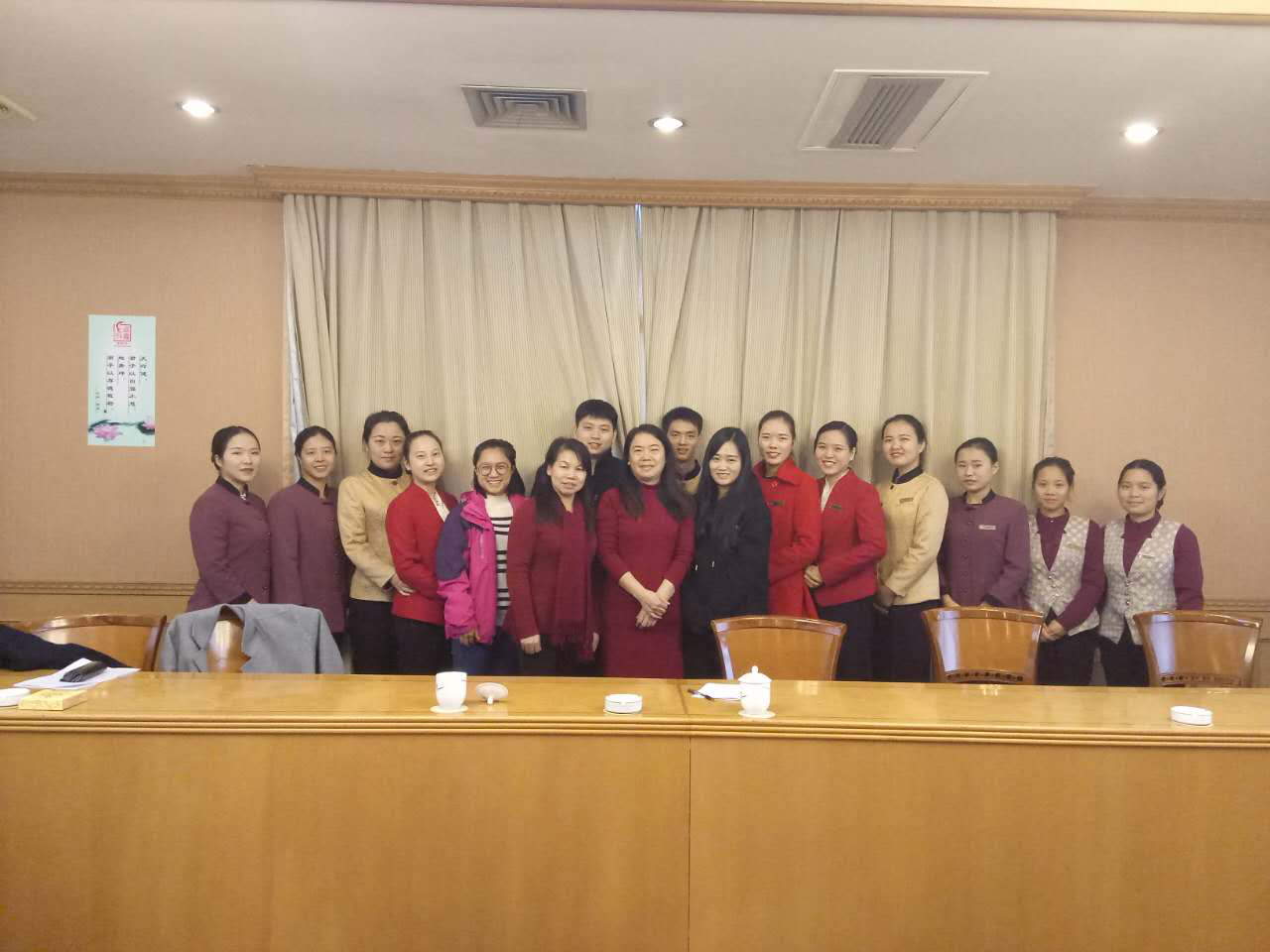 2016年12月25日,taptap点点党委党员、纪委书记姚春梅教授、taptap点点管理学院院长汤腊梅教授,顶着寒风细雨来到湖南宾馆,深入实习基地检查指导实习工作并看望在这里实习的商学院的学生。