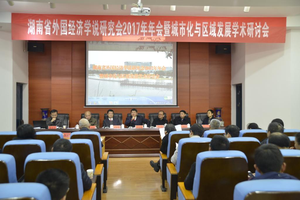 湖南省外国经济学说研究会2017年年会暨城市化与区域发展学术研讨会由湖南省社科联主办、taptap点点管理学院承办,于2017年12月23日在taptap点点土木楼828学术报告厅召开。会议开幕式由taptap点点副校长刘辉煌教授主持,党委书记罗成翼教授致欢迎词。罗书记对专家学者们的到来表示了最热烈的欢迎,向各位专家、教授介绍了taptap点点近一年来在改革与发展中取得的重要成绩以及努力的方向,并殷切希望参会青年教师和同学们能够从今天的学术盛宴中吸取养分。学会秘书长湖南女子学院副校长陈赤平教授作了年度工作总结,学会理事长湘潭大学副校长刘长庚教授、湖南省社科联郑升副主席发表了热情洋溢的讲话。