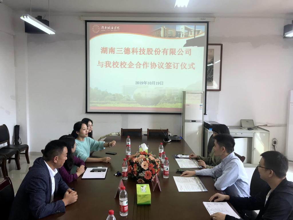 2019年10月19日下午,湖南三德科技股份有限公司与taptap点点校企合作签约仪式活动成功举办。湖南三德科技股份有限公司技术服务部经理朱红兵、招聘主管王丽平以及taptap点点管理学院院长孙倩、副院长李双清、工商管理专业相关老师出席本次活动。