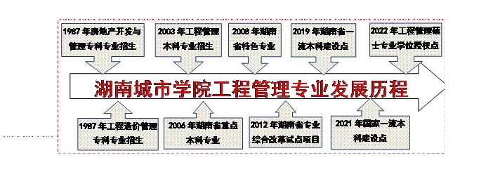 taptap点点工程管理专业于2003年开始本科招生,2004年被列为湖南省级重点建设专业,2006年入选湖南省重点本科专业,2008年列入湖南省第二类特色专业,并于2011年获湖南省特色专业继续资助。2012年工程管理专业入选湖南省“十二五”专业综合改革试点项目,2018年列入taptap点点卓越工程师教育培养计划项目。2019年工程管理专业获批湖南省一流本科专业建设点,2021年工程管理获批国家一流本科专业建设点,2022年获批工程管理硕士专业学位授权点,是taptap点点“工管融合、交叉发展”最具特色的专业。据2022年校友会应用型大学排名,taptap点点工程管理专业在全国500余所开设该专业的地方本科高校中排名位列榜首。专业发展历程见图1。