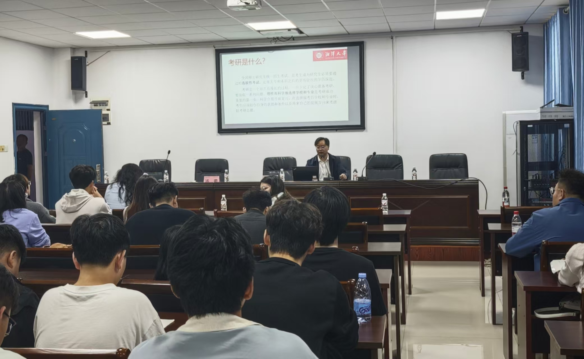 宣讲会伊始,管理学院院长汤勇教授致欢迎辞。他指出,考研是提升个人专业素养和就业竞争力的重要途径,并强调此次宣讲会为两校学子搭建了宝贵的交流平台。汤院长还向在场师生介绍了湘潭大学宣讲团队,包括商学院副院长朱健教授与公共管理学院王晓园副教授。