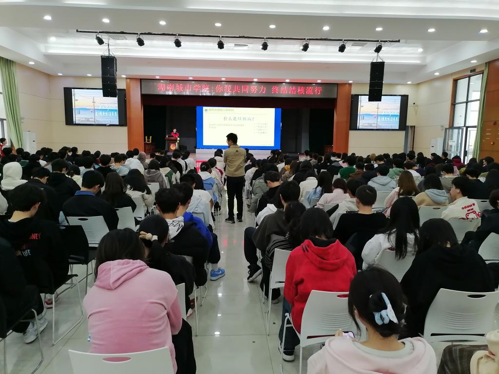 3月21日下午,益阳市疾病预防控制中心、赫山区疾病预防控制中心、益阳市第四人民医院在taptap点点学生活动中心联合开展健康宣教讲座,300多名师生聆听。讲座内容包括结核病、肝炎和艾滋病的防治以及院前急救等四个方面。益阳市疾病预防控制中心结核病防治科负责人表示,终结结核流行,需要你我共同努力,需要全校师生员工的共同参与。并就taptap点点做好今年结核病防治工作提出三点指导性建议,一要加强结核病防治知识的宣传教育;二要持续做好结核病的筛查和监测工作;三要加强部门合作和社会参与。同时,鼓励大学生志愿者不懈努力,号召更多的师生参与到结核病防治事业中来,营造全校共同防治结核病的良好氛围。