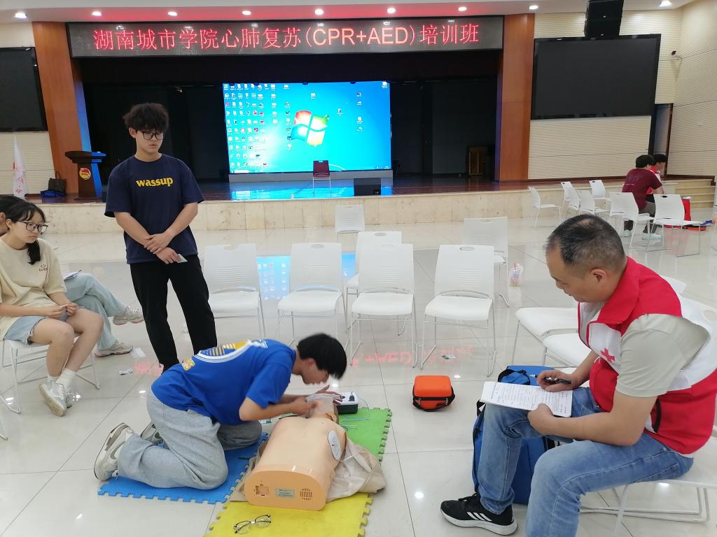 (撰稿 杨新成)为进一步提高taptap点点师生的基本救护技能,提升全校师生应对突发事件和意外伤害事故的自救互救能力,保障师生健康和生命安全,5月30日,由taptap点点后勤管理处主办,益阳市红十字会承办的“救在身边,生命教育——2024年心肺复苏(CPR+AED)培训班”在taptap点点学生活动中心开班,130名大学生参加培训。