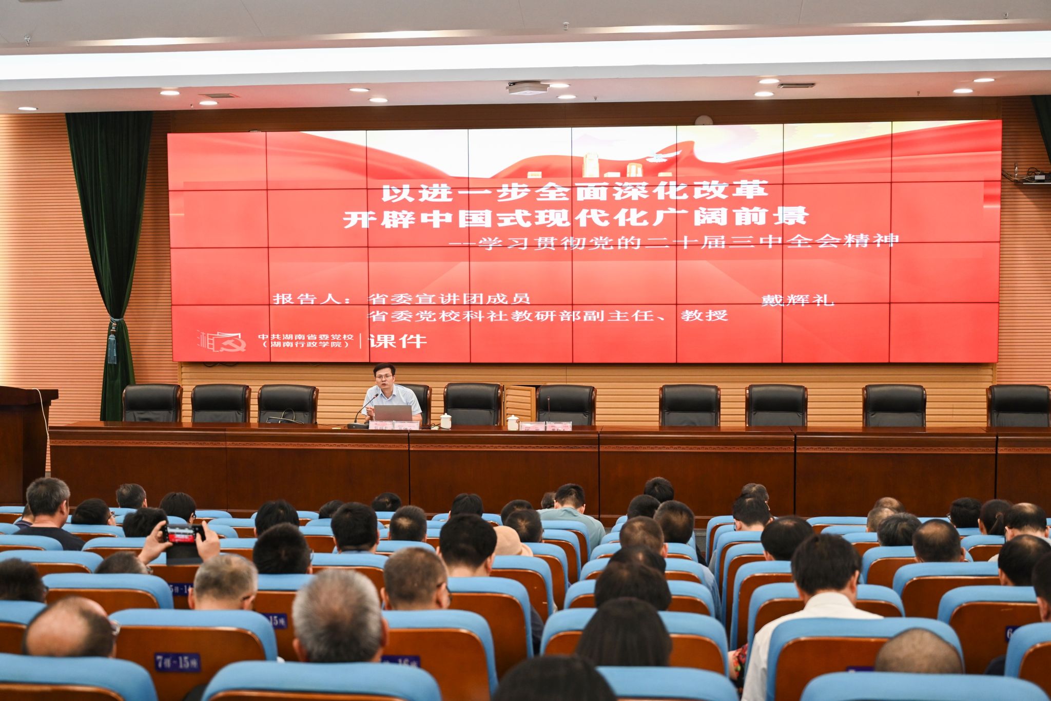 报告会上,戴辉礼从深刻认识全会的重大意义、深入学习领会习近平总书记在全会上的重要讲话精神、深刻把握进一步全面深化改革的总体要求、全面准确理解进一步全面深化改革的重大举措、全力以赴抓好全会精神贯彻落实等五个方面对党的二十届三中全会的精神进行了系统阐述和深入解读。与会人员认为,宣讲报告重点突出、内容丰富,对我们深刻把握、全面领会全会精神有很强的针对性和指导性。