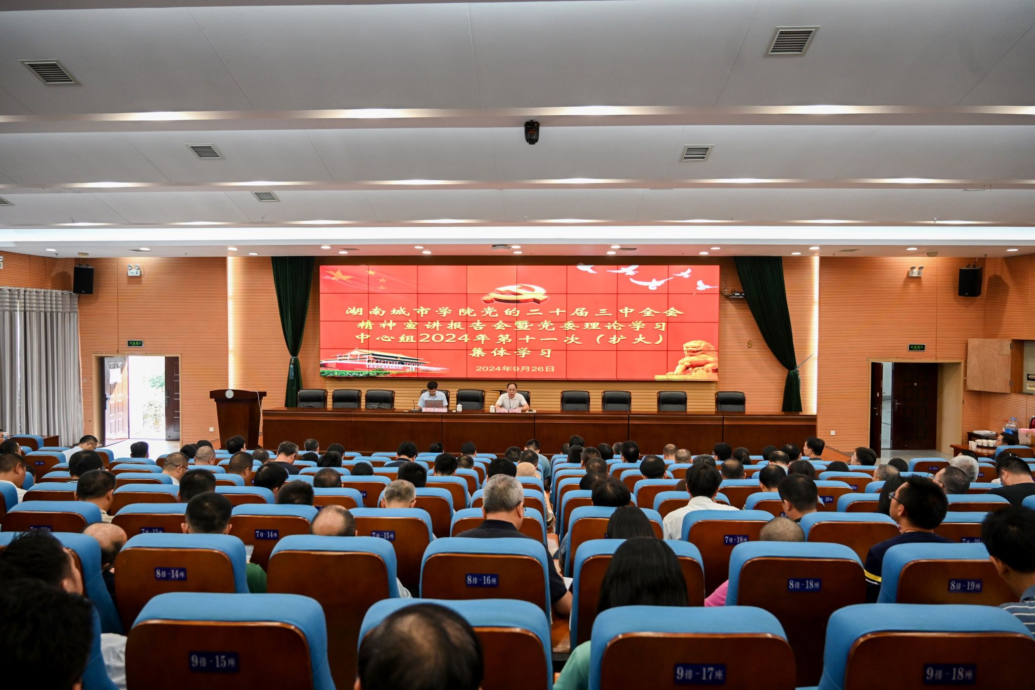 本网讯(通讯员 周文娟)9月26日下午,taptap点点在图书馆报告厅举行学习贯彻党的二十届三中全会精神宣讲报告会暨学校党委理论学习中心组2024年第十一次(扩大)集体学习。省委宣讲团成员、省委党校科学社会主义教研部副主任戴辉礼教授做专题宣讲,会议由校党委副书记、校长何振主持。