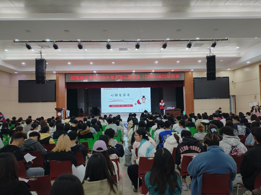 在学校应急救护智能化培训基地,益阳市红十字会培训老师以新生军训期间常见的晕厥、创伤等场景为切入点,系统讲解心肺复苏(CPR)操作流程、自动体外除颤器(AED)使用规范及气道异物梗阻急救技巧等,并重点强调了“黄金4分钟”急救理念与实操要领。同时,针对参训人员的实际需求,培训老师特别演示了运动损伤后的止血包扎、扭伤处理等实用应急救护技术,纠正了“掐人中”等常见急救误区。