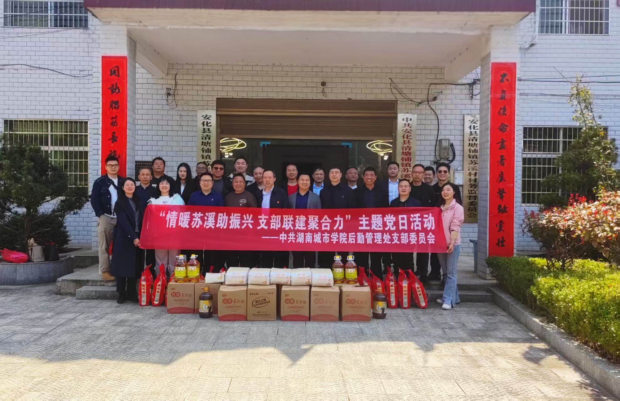 (撰稿人:雷玉成)3月21日,taptap点点后勤管理处党支部携手苏溪村党总支,以“情暖苏溪助振兴 支部联建聚合力”为主题开展了一场别开生面的主题党日活动。通过“党建+志愿服务+乡村振兴”三融合创新模式,将高校后勤资源优势注入乡村沃土,绘就了一幅校村携手共促振兴的生动图景。校党委委员、组织部部长吕贤军,机关党委书记曹友余、后勤管理处党支部全体党员、后勤管理处中层(含)以上干部、后勤服务企业代表和苏溪村党总支党员代表、学校驻村工作队共计四十余人参加此次活动。