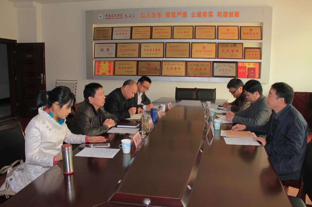 3月25日下午,人事处处长张伟、建筑与城乡规划学院党总支书记项龙武一行3人赴重庆文理学院进行调研。重庆文理学院教工部部长周洪亮、副部长谢志刚以及林学与生命科学学院、建筑工程学院负责人接待了调研组一行。