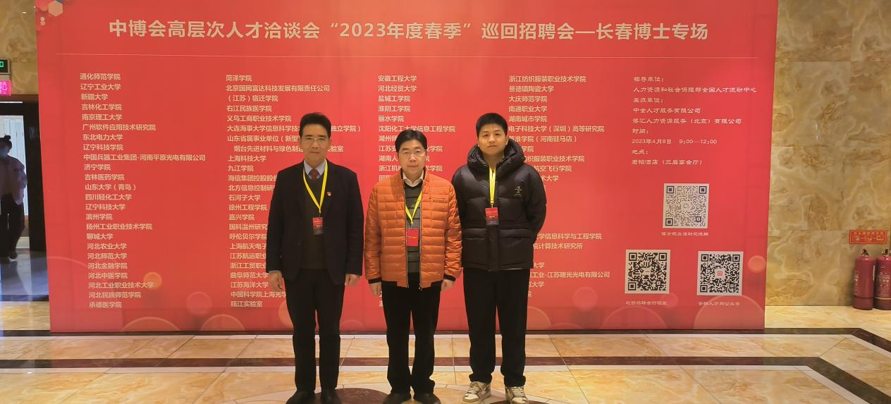 2023年4月7日,由人事处处长张伟、体育学院党委书记郭羽、人事处郑重宇三人组成的揽才小组赴吉林长春,参加中博会高层次人才洽谈会——长春博士专场,此次长春博士专场招聘会共有高等院校、科研院所等96家单位参会。