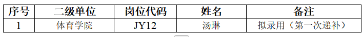 根据《taptap点点2025年事业编工作人员公开招聘公告》有关规定,因JY12岗位徐小雅未在规定时间内取得学历学位认证,自动取消应聘资格。现已按照相关规定对递补人员汤琳同志进行了体检和政治考察,结论均为合格,拟予以录用。