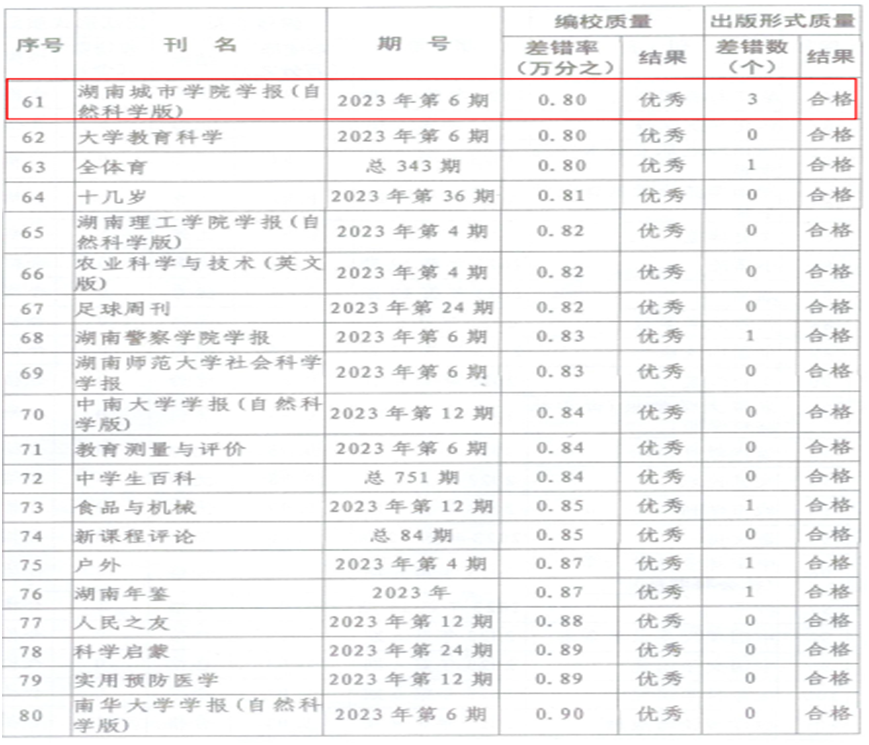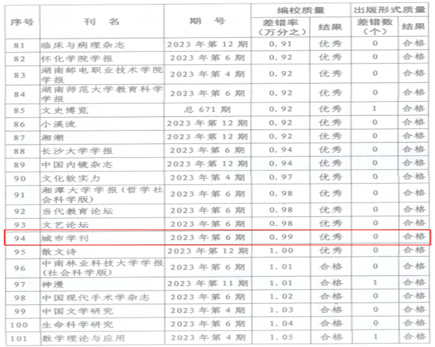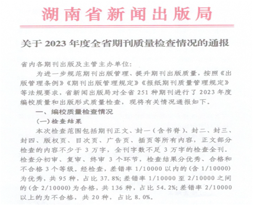 近日,湖南省新闻出版局下发《关于2023年度全省期刊质量检查情况的通报》,《taptap点点学报(自然科学版)》和《城市学刊》获评“优秀”等级。
