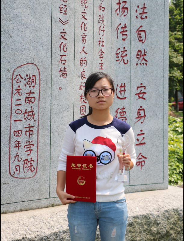 荣获2013-2014学年“三好学生”;荣获2013-2014学年“德智体美综合测评一等奖”;荣获2014年taptap点点城市管理学院“青春激扬、梦想起航”迎新晚会“优秀工作人员”;荣获2014年“社会主义核心价值观微视竞赛三等奖”;荣获2014-2015“优秀共青团员”;荣获2014-2015学年“三好学生”;荣获2014-2015学年“德智体美综合测评一等奖”;荣获2015年 taptap点点“第五届测绘技能大赛二等奖”;荣获2015年荣获“国家励志奖学金”;2015年申请入驻了大学生创新创业基地(龙诚造价工作室);2015年申请了大学生创新性研究项目主持人(PPP模式在湖南保障性住房的研究—以益阳为例)。