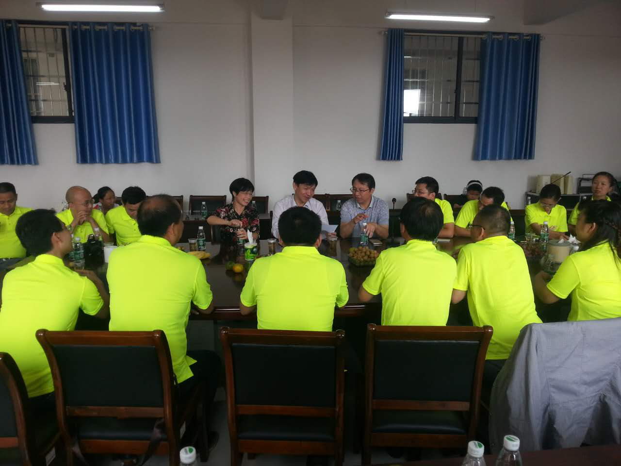 座谈会后,校友们参观了校园,在校园各处驻足回忆,笑谈往事,合影留念。明黄色的班级聚会T恤,成为校园里一道亮丽的风景。